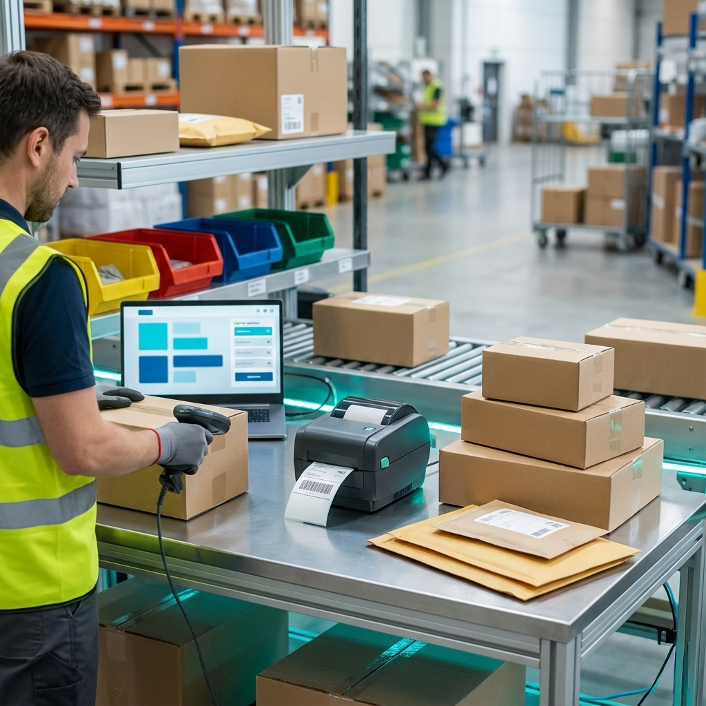 • Überprüfung von Sendungseinheiten auf Vollständigkeit durch Scannen, Ermittlung des Gewichts und Ausdruck des Lieferscheins